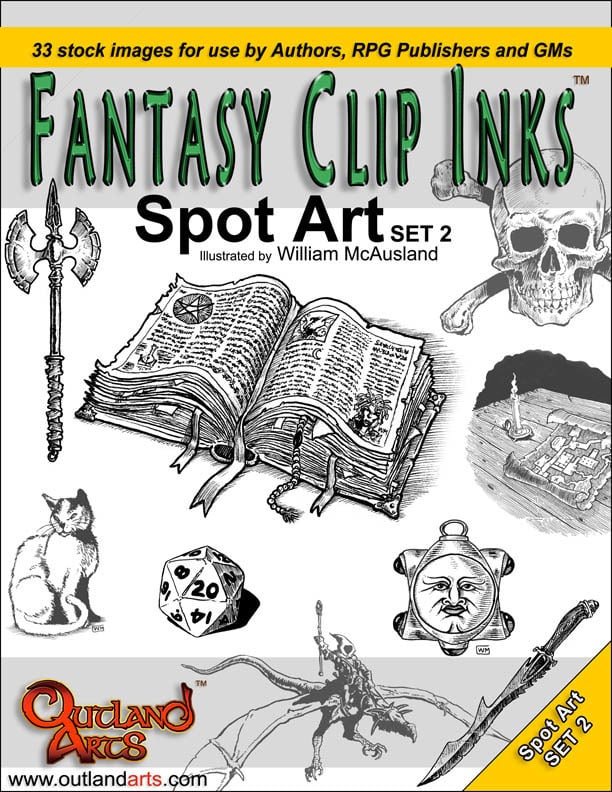 Bring your Adventures to life! Fantasy Clip Inks, published by Outland Arts, has one goal: bring you excellent ink art for your publications and websites. Created by industry veteran William McAusland, this series provides professional-quality illustration at affordable prices.